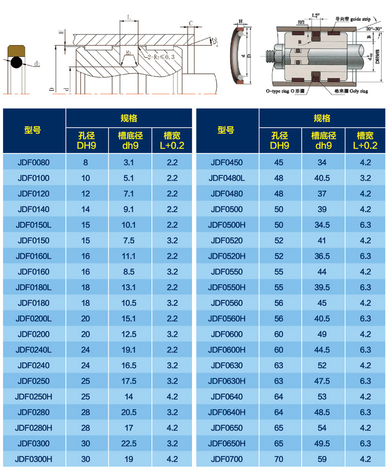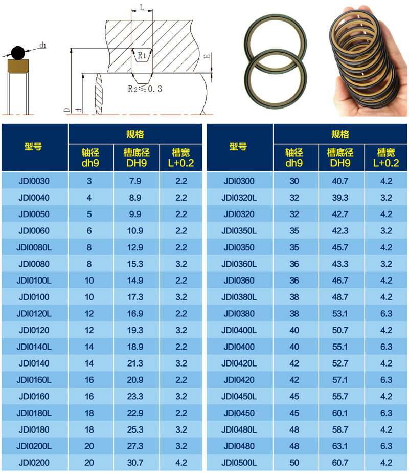格萊圈由一個(gè)橡膠O型圈及聚四氟乙烯圈組合而成。〇型圈施力,格萊圈為雙作用活塞密封。摩擦力低,無爬行,啟動(dòng)力小,耐高壓。可分為孔用格來圈和軸用格來圈。